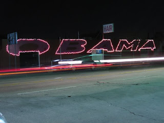 My mom voted for McCain because she believes that war creates jobs and was assured that a vote for McCain is a vote for jobs. So far these two wars have created jobs, but only for Dick Cheney and friends. I think she may have even voted yes on Prop 8 because someone at her church told her to. On my way home from Ben's and his old lady's house, I couldn't help notice the decor on this building on Hyperion. This hair place is run by gay and transgendered filipinos. It's where my mom gets her hair did. Wonder if she's been in a while. It's now extremely difficult to miss.
