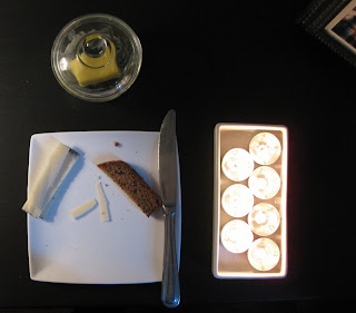 Woke up at noon today. The above represents what's left of my breakfast. Raining. Love the sound of it - especially of tires rolling over water and back spraying into wheel wells.